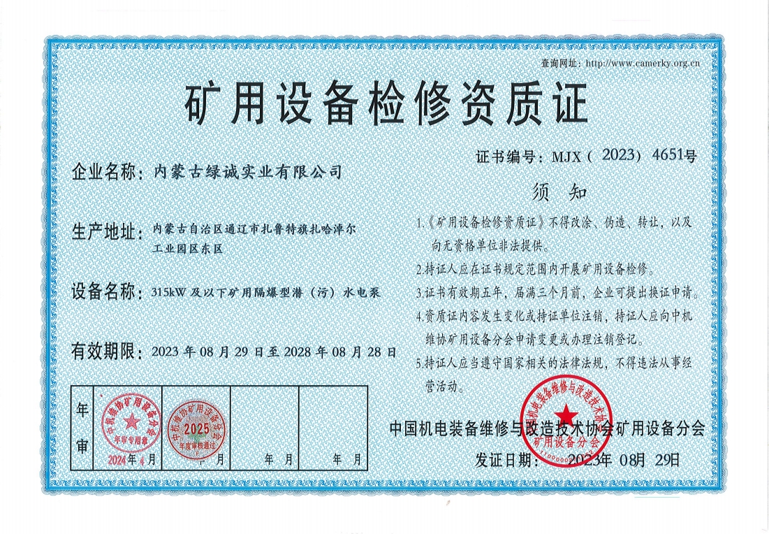 2018年我公司通過(guò)中國(guó)機(jī)電裝備維修與改造技術(shù)協(xié)會(huì)礦用設(shè)備分會(huì)審核并取得了9項(xiàng)礦用設(shè)備檢修資質(zhì)證書(shū)。公司本著“誠(chéng)信為本 質(zhì)量為先 全心全意為客戶(hù) ”的服務(wù)理念,圓滿(mǎn)完成各個(gè)廠礦的機(jī)械維修及配套服務(wù),期待與您共同合作。